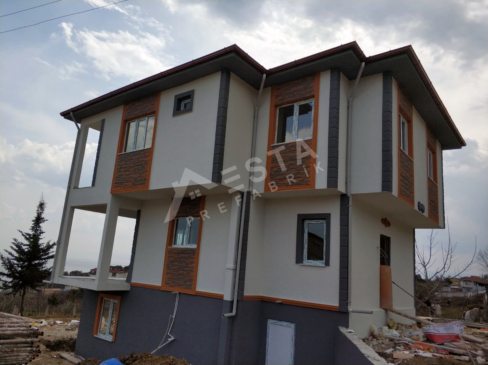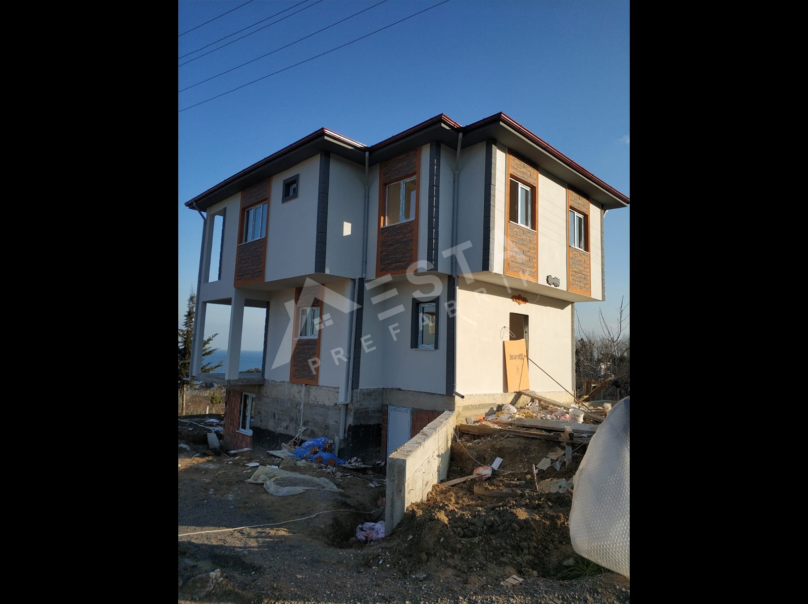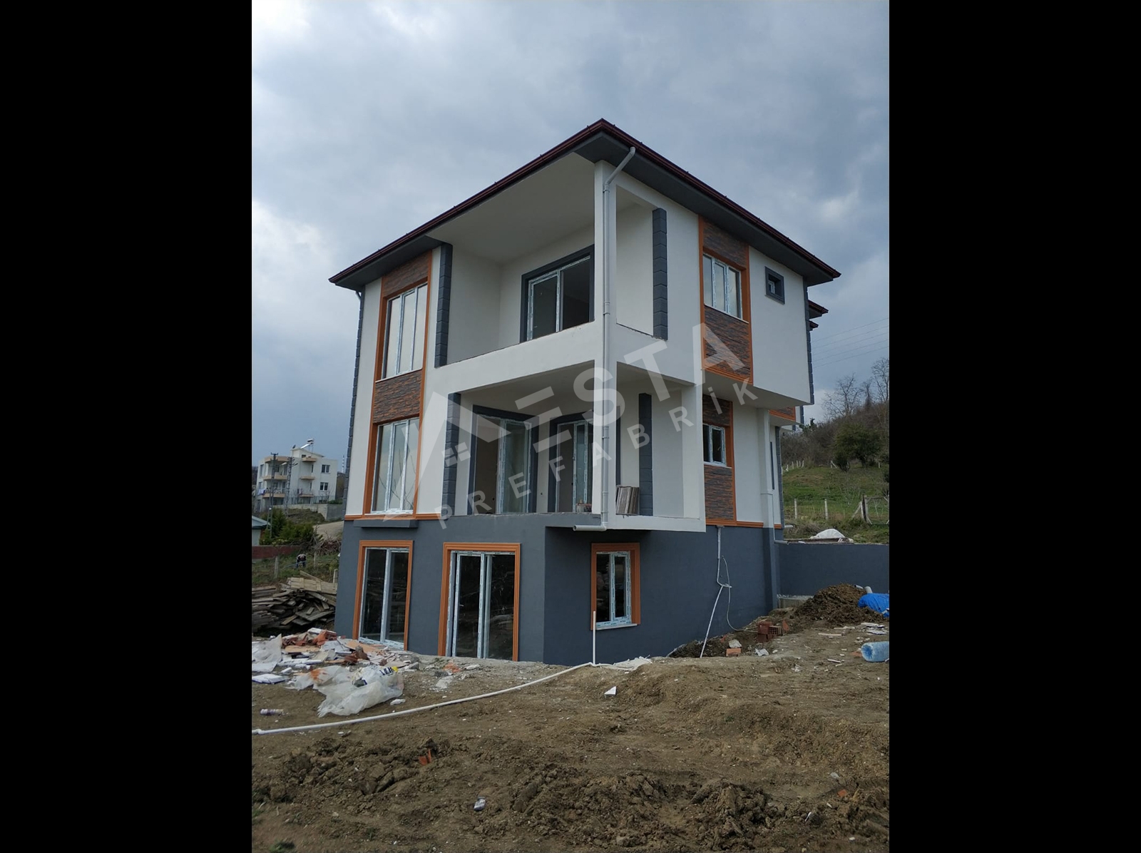 Prefabrik ev malzemeleri (Duvar panelleri, çelik birleşim elemanları, tavan kaplaması, tavan izolasyonu ve çatı kaplama malzemeleri), Dış kapısı çelik kapı, İç kapılar Amerikan göbekli kapı, Balkon kapıları PVC camlı kapı, Pencerelerin, Vasistasları ve Camların takılması, Binanın iç ve dış cephe boyasının yapılması, bina içerisindeki elektrik ve su tesisatlarının çekilmesi, elektrik ve su armatürlerinin verilmesi, dahildir.