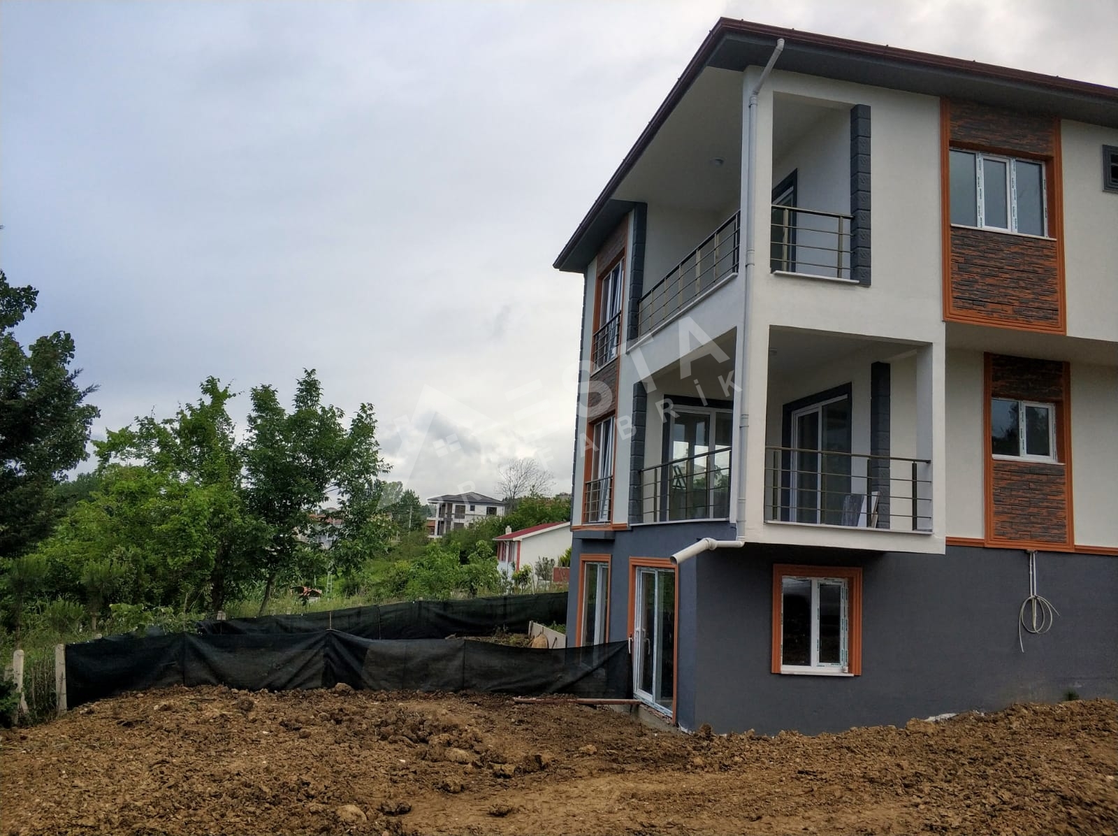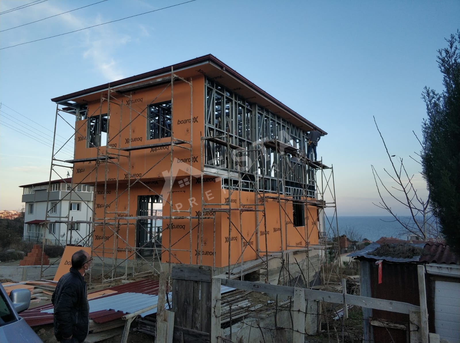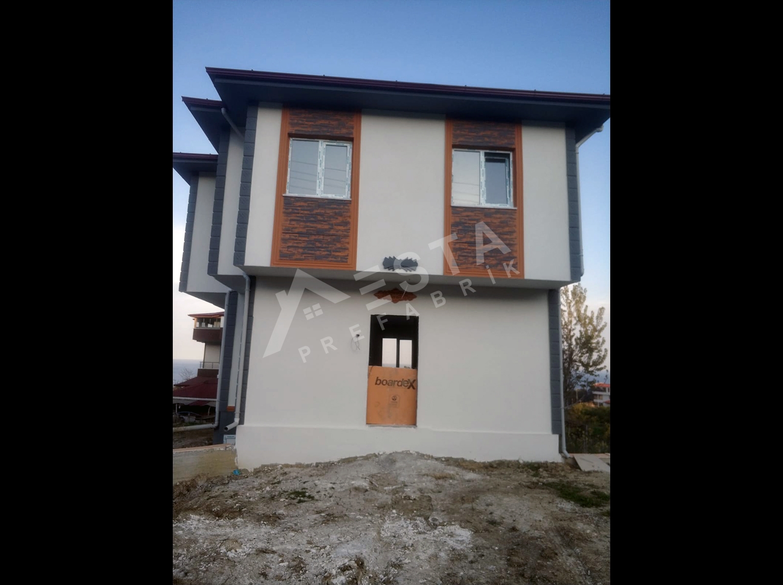 Prefabrik ev malzemeleri (Duvar panelleri, çelik birleşim elemanları, tavan kaplaması, tavan izolasyonu ve çatı kaplama malzemeleri), Dış kapısı çelik kapı, İç kapılar Amerikan göbekli kapı, Balkon kapıları PVC camlı kapı, Pencerelerin, Vasistasları ve Camların takılması, Binanın iç ve dış cephe boyasının yapılması, bina içerisindeki elektrik ve su tesisatlarının çekilmesi, elektrik ve su armatürlerinin verilmesi, dahildir.